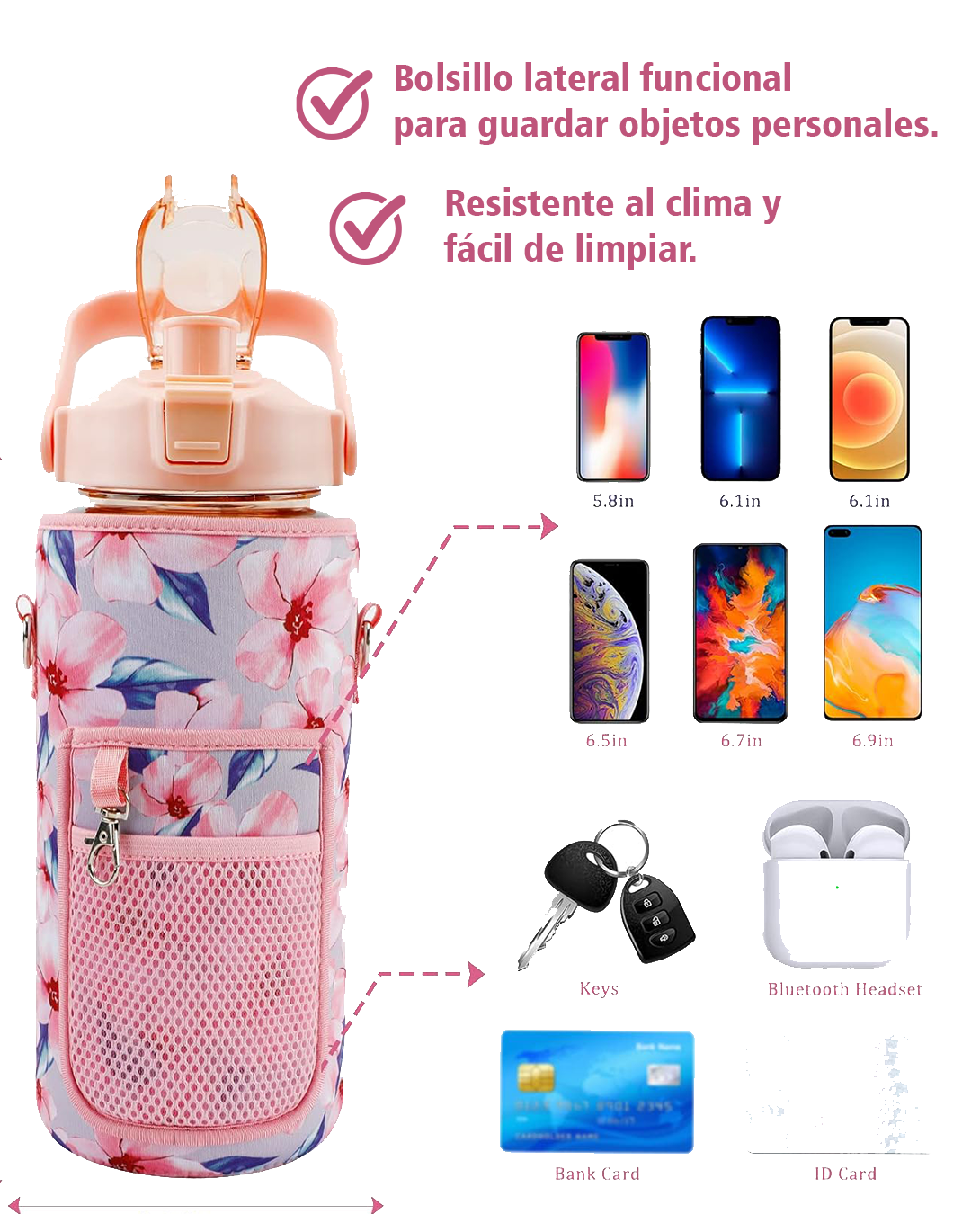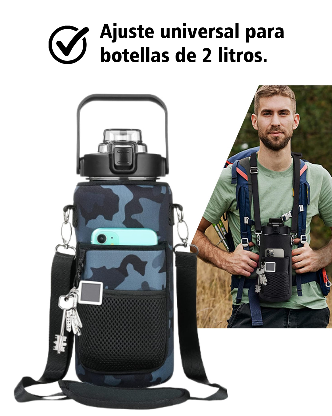 - ✅ Compatibilidad: Botellas y termos de hasta 2 litros.